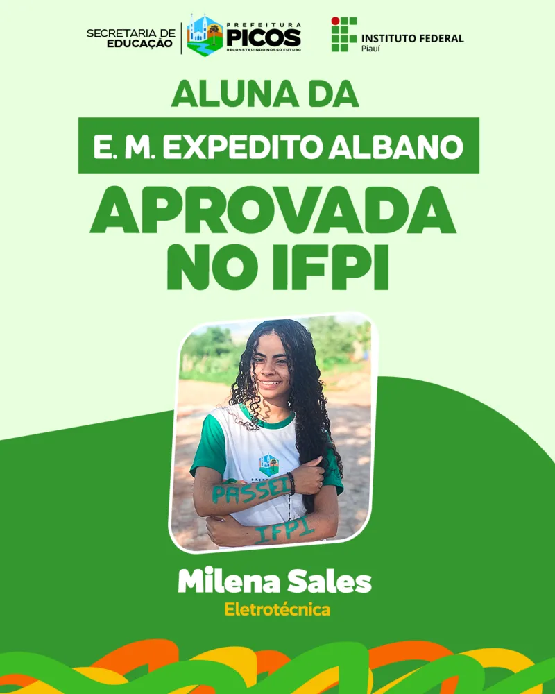 As outras três alunas aprovadas no IFPI são das escolas Heli Nunes, no bairro Pantanal, e da zona rural de Picos, povoado Curralinho, da escola Expedito Albano.