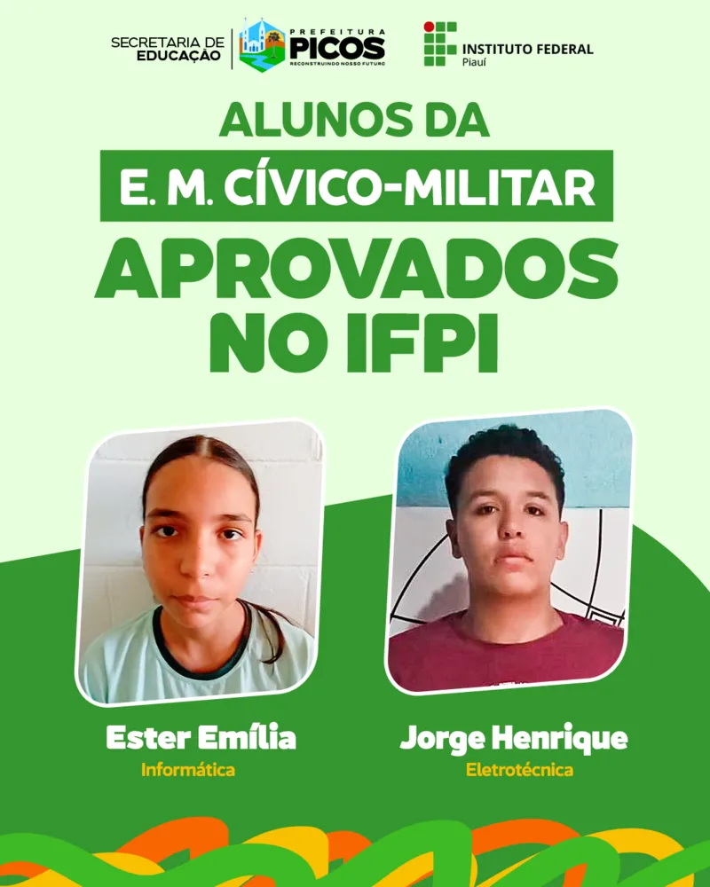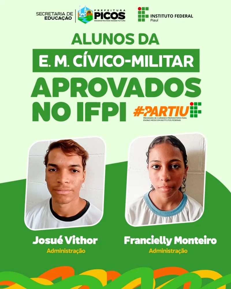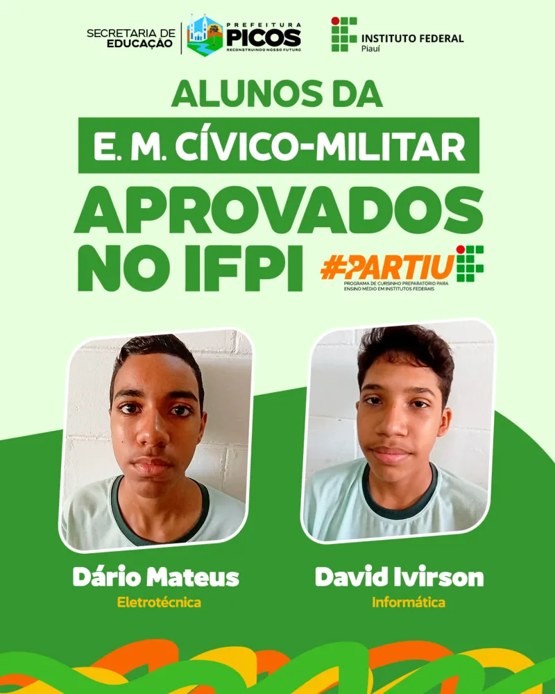 Na escola Cívico-militar, 11 estudantes foram aprovados. Destes, oito participaram do programa #PartiuIF, parceria entre o IFPI e a Secretaria de Educação de Picos, com intuito de proporcionar aulas de reforço, que auxiliaram os alunos na realização do teste seletivo e, consequentemente, em suas aprovações.