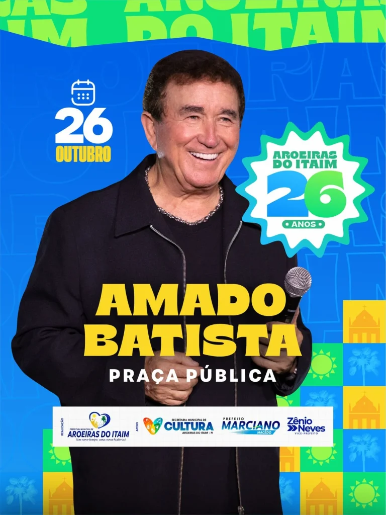 O município de Aroeiras do Itaim já se prepara para celebrar em grande estilo seus 26 anos de emancipação política e administrativa, comemorados no dia 27 de outubro. Para marcar a data, a gestão municipal anunciou que o cantor Amado Batista será a primeira atração confirmada da programação. O show acontecerá no dia 26 de outubro, na véspera do aniversário da cidade.