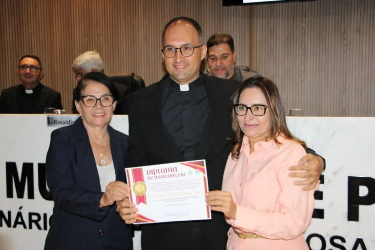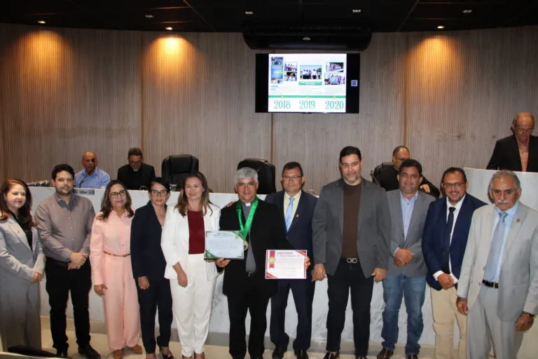 Durante a homenagem, Dom Plínio José destacou o significado do reconhecimento da Câmara Municipal, reforçando a missão da Igreja em cuidar das pessoas em todas as fases da vida.