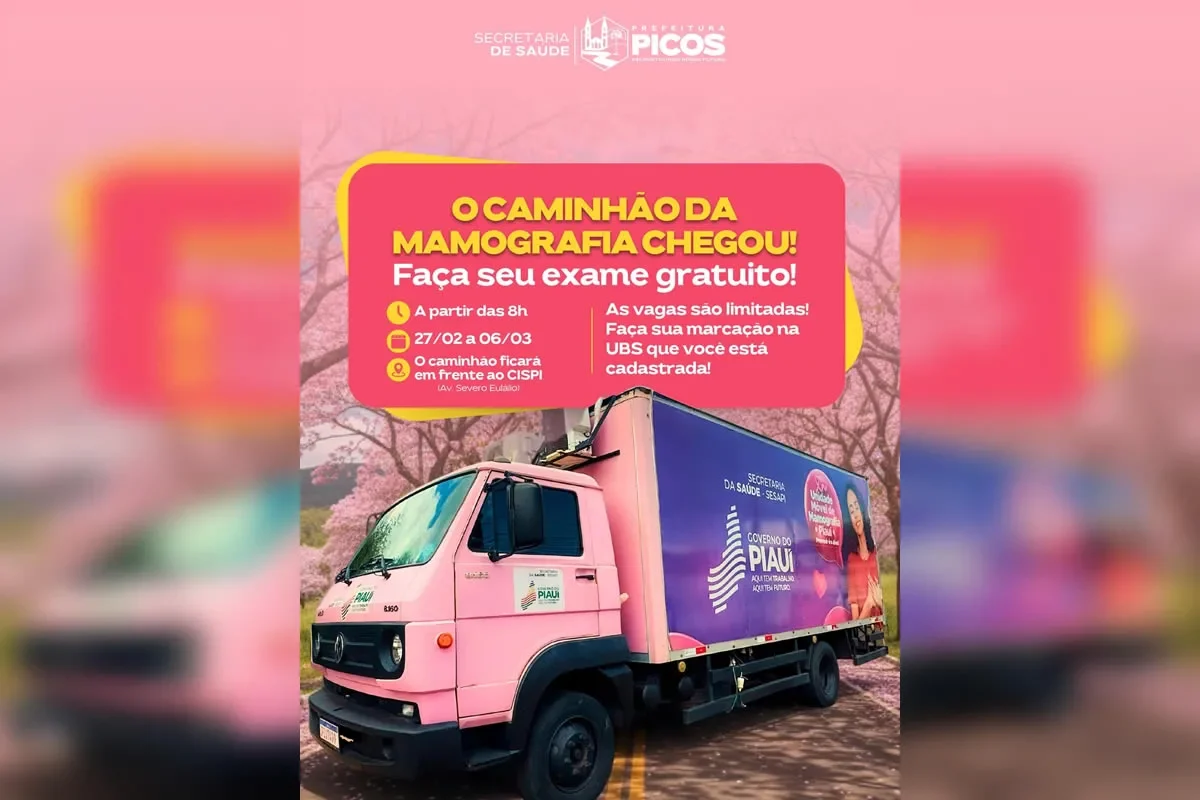 Mulheres de Picos voltarão a ter acesso ao exame gratuito de mamografia com a chegada da unidade móvel de mamografia ao município, conforme programação divulgada para as próximas semanas.
