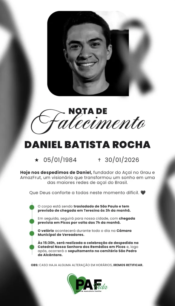 A morte de Daniel Rocha gerou grande comoção em Picos, cidade onde construiu sua trajetória empresarial. Reconhecido pelo perfil empreendedor, ele foi responsável pela expansão da Açaí no Grau, levando a marca para diversas regiões do Brasil.
