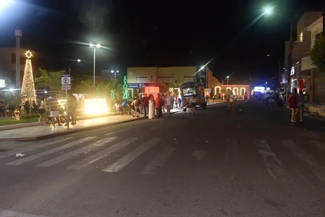 Logo em seguida o prefeito, Dr. Pablo Santos (PT), deu início a contagem regressiva e as luzes se acenderam simultaneamente nas Praças Félix Pacheco e Josnio Ferreira, na Avenida Getúlio Vargas, na Igrejinha do Sagrado Coração de Jesus, na Igreja Matriz Nossa Senhora dos Remédios e no Balão do Bairro Junco.