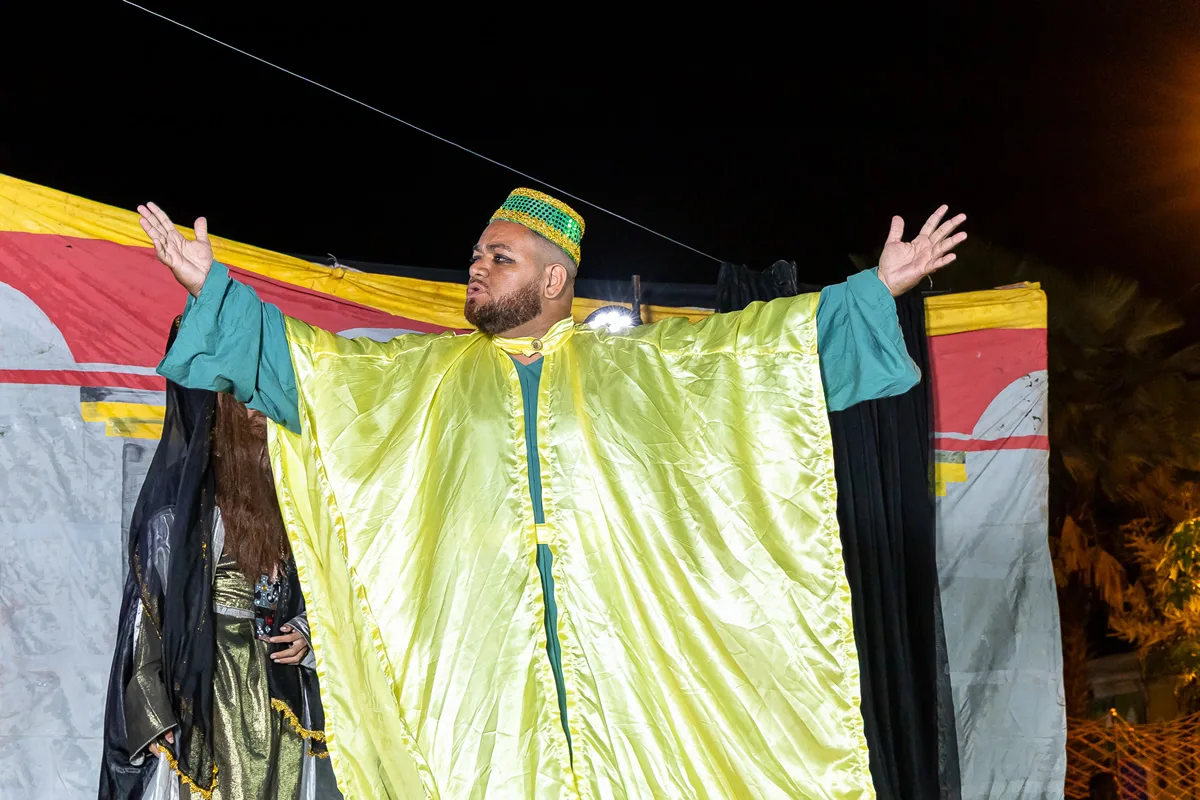 Realizado em frente ao antigo Bar da Glória pela Companhia de Teatro Os Desfraudadores, o espetáculo reuniu mais de cem artistas e atraiu público mesmo diante da chuva que atingiu a cidade. A presença popular e o envolvimento dos participantes foram destacados pelo secretário municipal de Cultura, Leilivan.