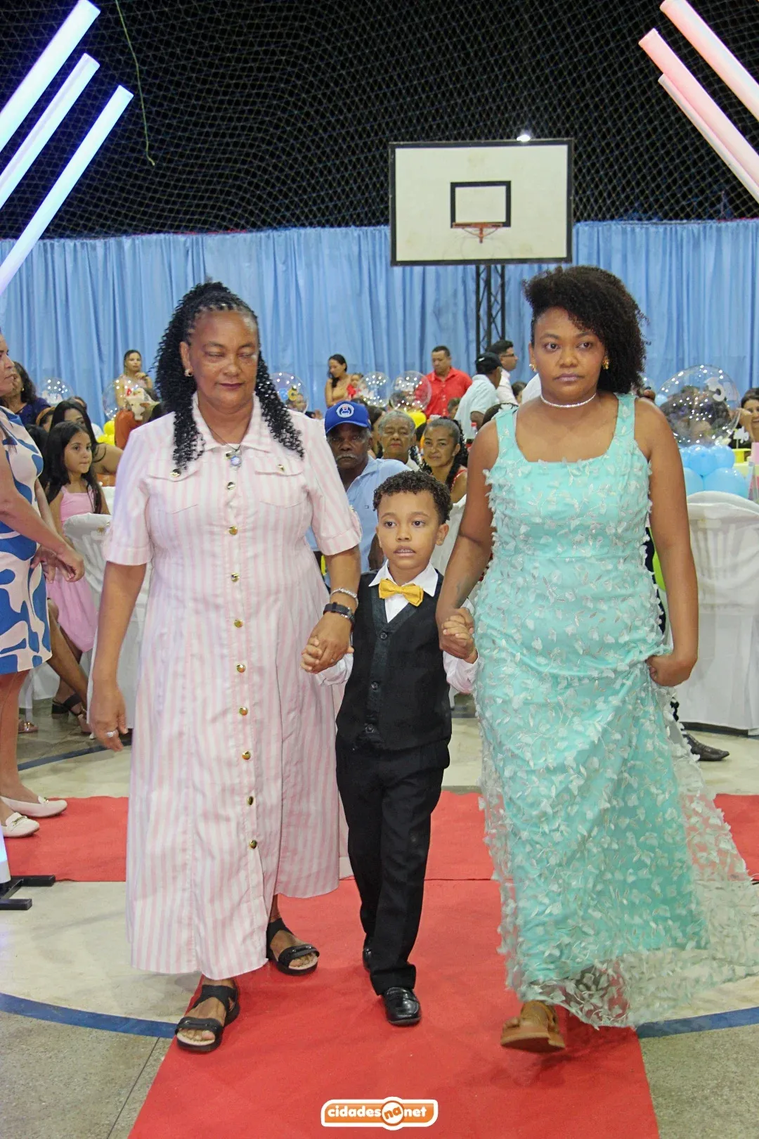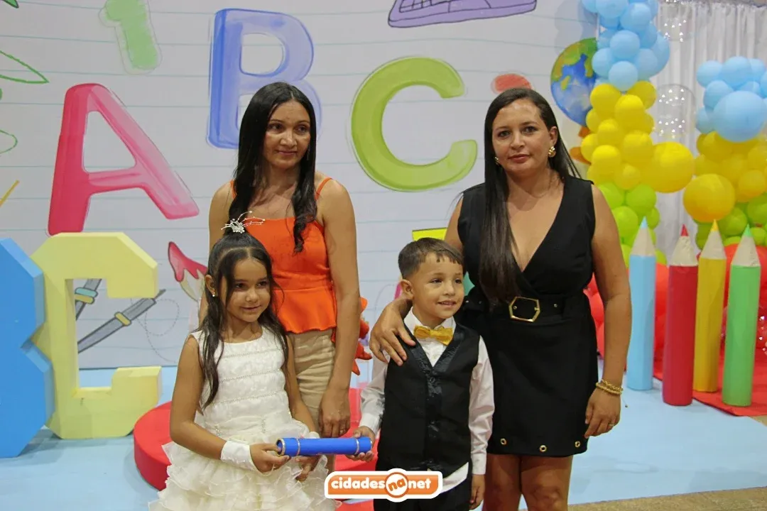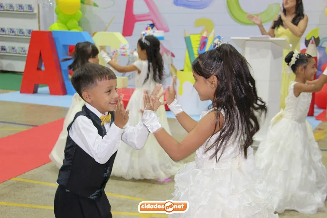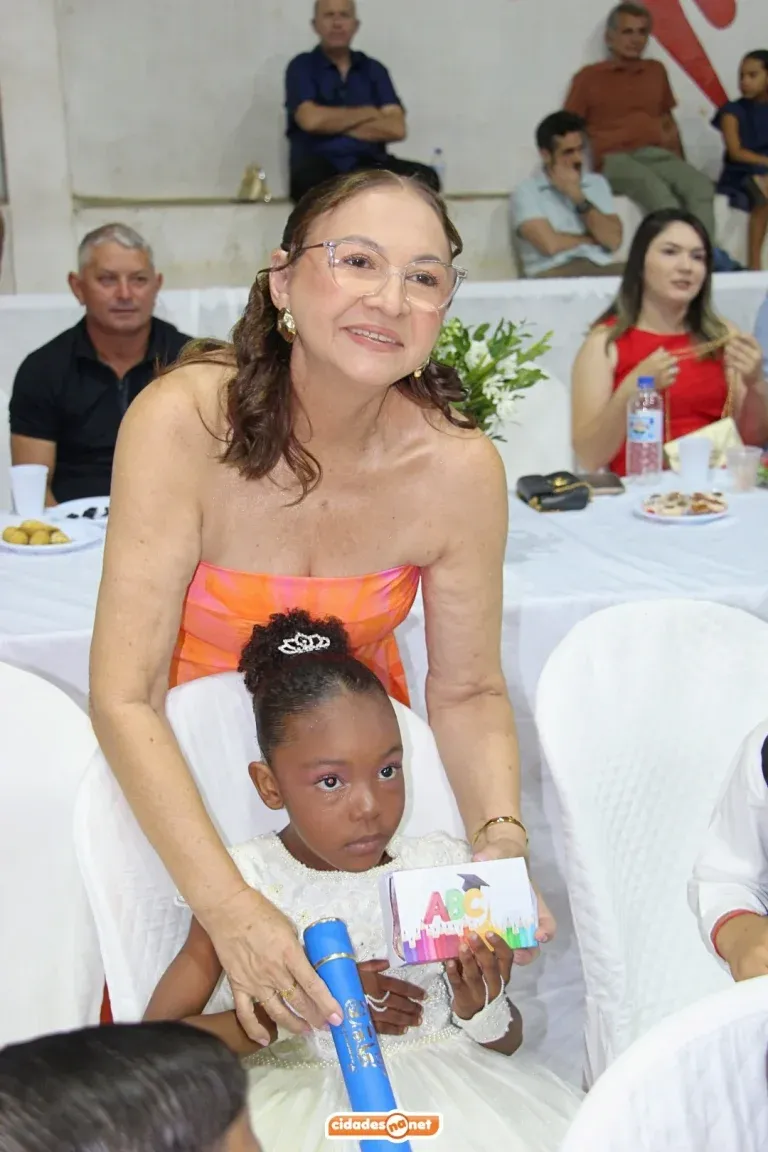 No momento de maior expectativa da noite, as autoridades realizaram a entrega dos certificados aos formandos, enquanto os Amigos do ABC presentearam cada aluno com uma lembrança especial. Para encerrar a solenidade, as crianças dançaram a tradicional valsa do ABC, acompanhadas por familiares e convidados. Após a cerimônia, a comemoração continuou com show do cantor Héricles Silva, além de cama elástica, pula-pula e distribuição de sorvetes, garantindo diversão aos pequenos formandos e seus familiares.