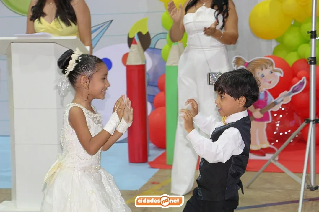 Ao todo, 38 crianças participaram da solenidade, representando a Creche Eusébio Borges Leal, a Unidade Escolar Augustinho José Garcia, a Unidade Escolar Lagoa do Tucano e a Unidade Escolar Nossa Senhora dos Remédios. A cerimônia teve início com a composição da mesa de honra, que contou com a presença do prefeito Dr. Clayton Barros, da primeira-dama e secretária municipal de Educação, Elayne Sá, do deputado estadual Dr. Thales Coelho, do vice-prefeito Paulo Roberto Portela e sua esposa Layse Mayara, além de vereadores, ex-prefeito Cristiano Portela, diretores e professores da rede municipal.
