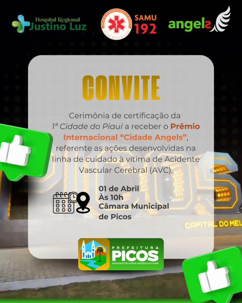 Em Picos, o reconhecimento está relacionado às ações desenvolvidas por instituições como o Hospital Regional Justino Luz, o SAMU 192 e demais órgãos da rede de saúde, que atuam de forma integrada na linha de cuidado ao paciente com AVC. A certificação representa um avanço nas políticas públicas de saúde no município.