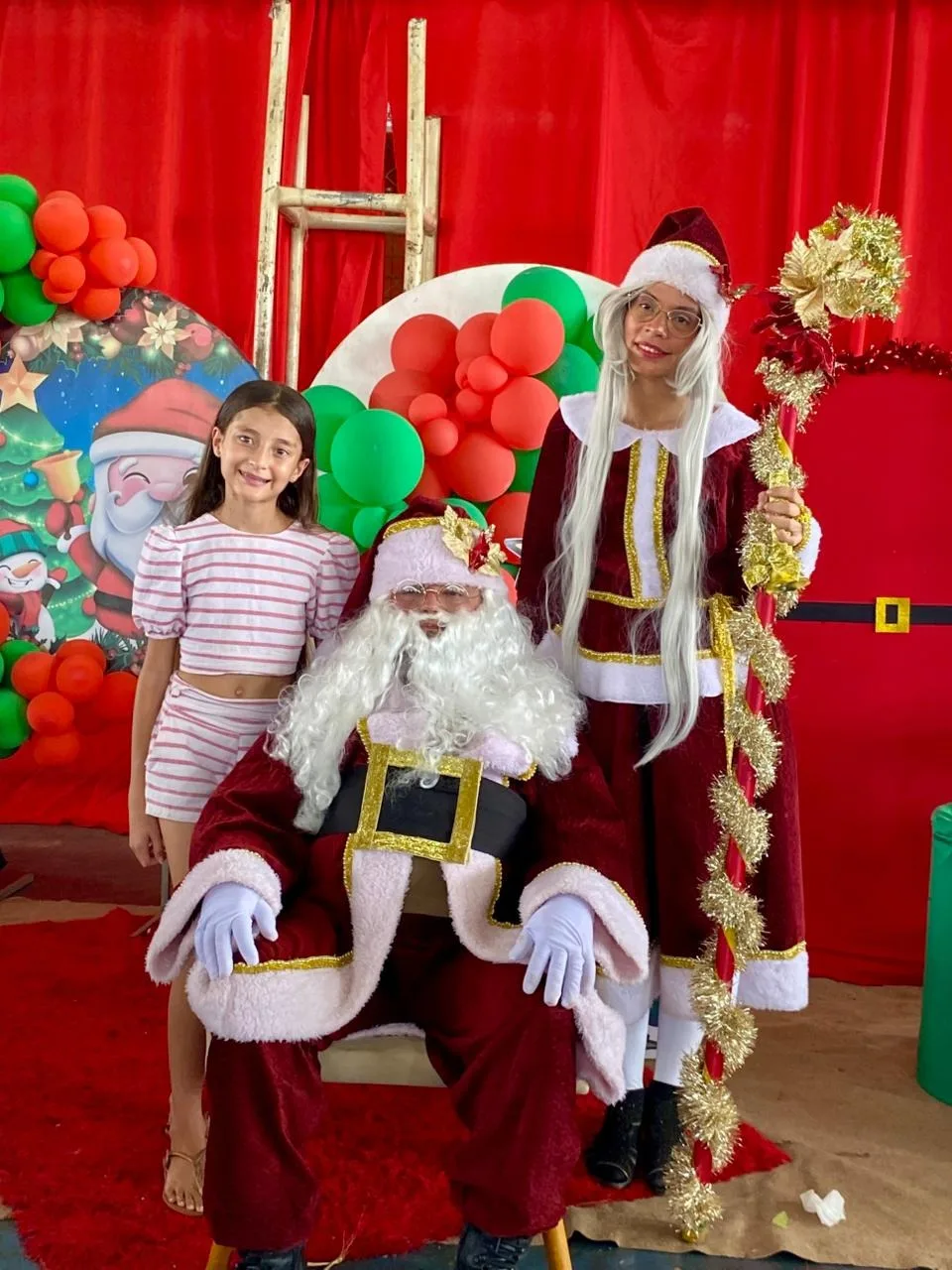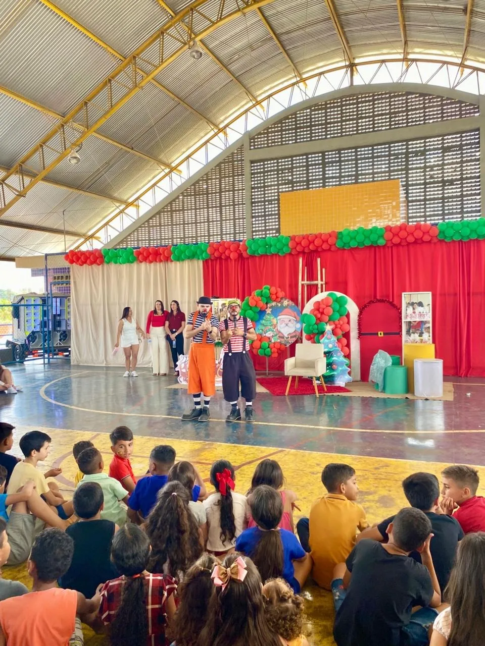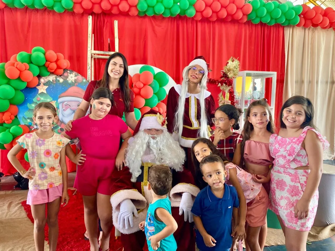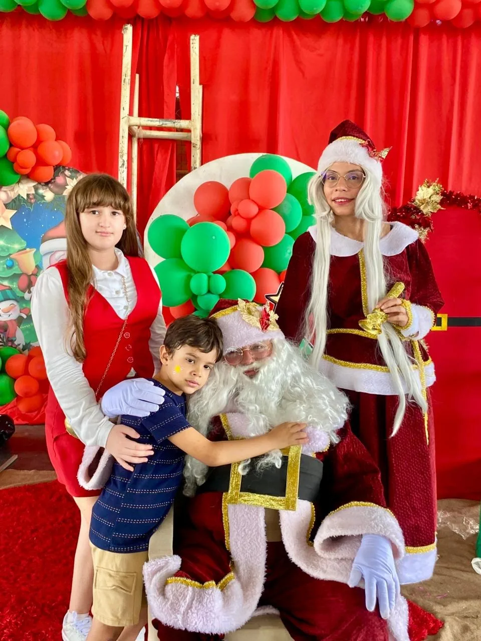 Entre as principais atrações estiveram os palhaços dos “Mímicos da Alegria”, que arrancaram risadas e aplausos do público, além da participação especial do Papai Noel e da Mamãe Noel, responsáveis por momentos de grande emoção com a entrega de presentes e lembrancinhas, tornando o Natal ainda mais mágico para as crianças.