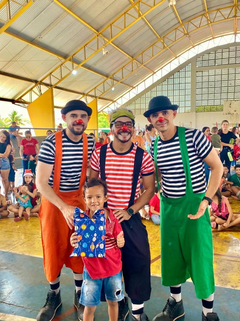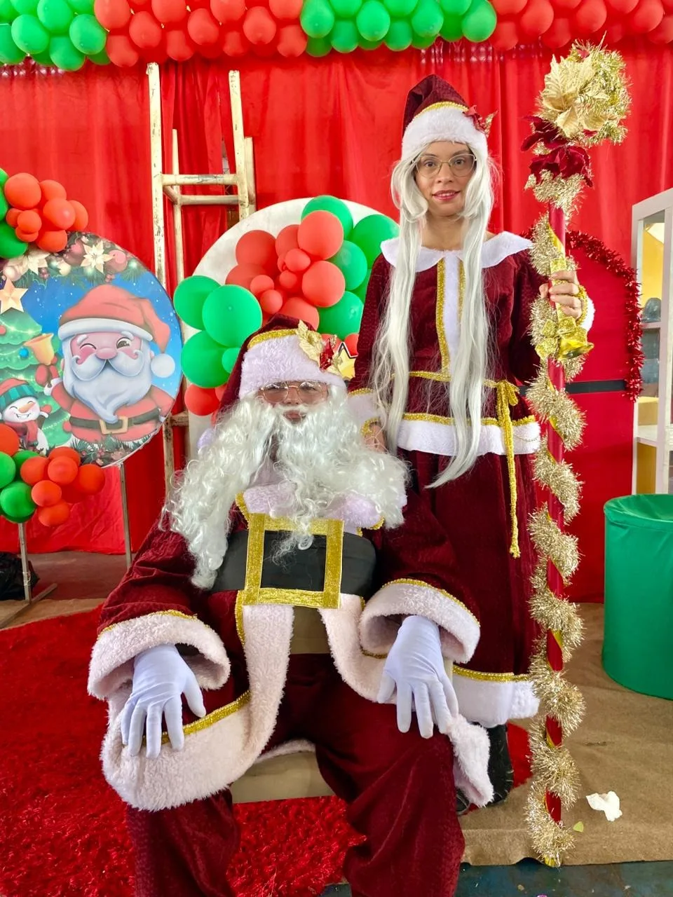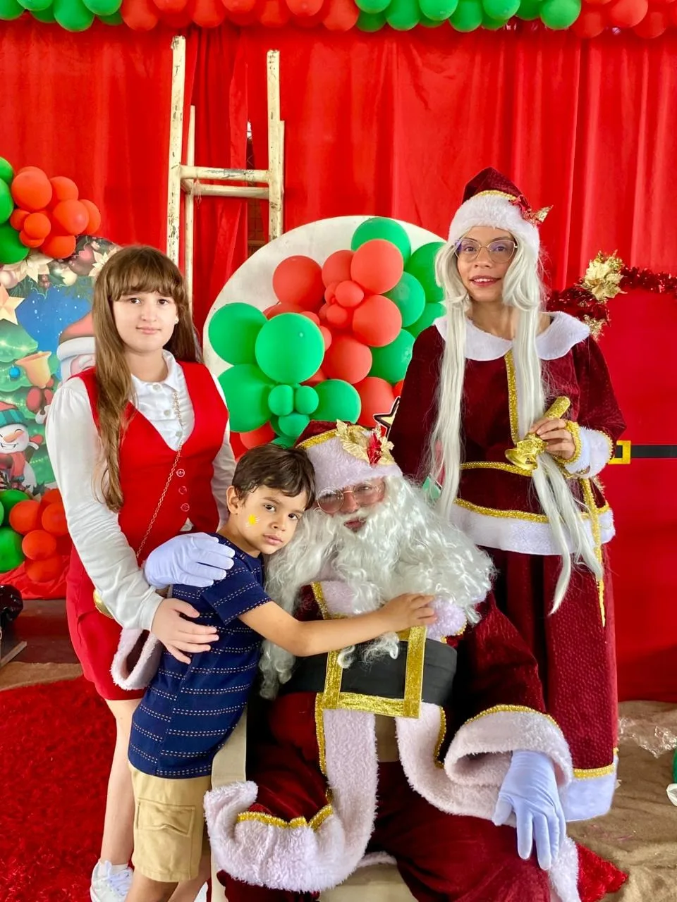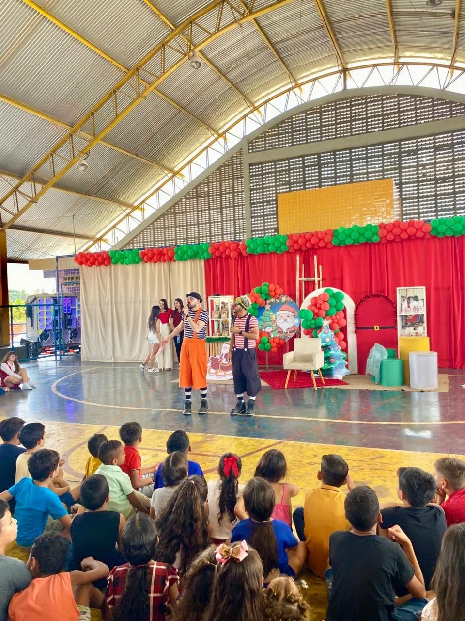 Entre as principais atrações estiveram os palhaços dos “Mímicos da Alegria”, que arrancaram risadas e aplausos do público, além da participação especial do Papai Noel e da Mamãe Noel, responsáveis por momentos de grande emoção com a entrega de presentes e lembrancinhas, tornando o Natal ainda mais mágico para as crianças.