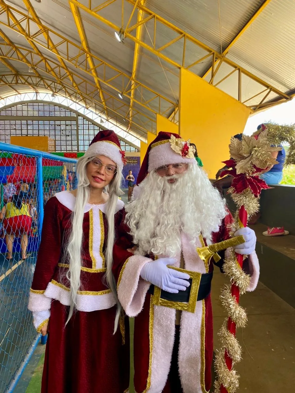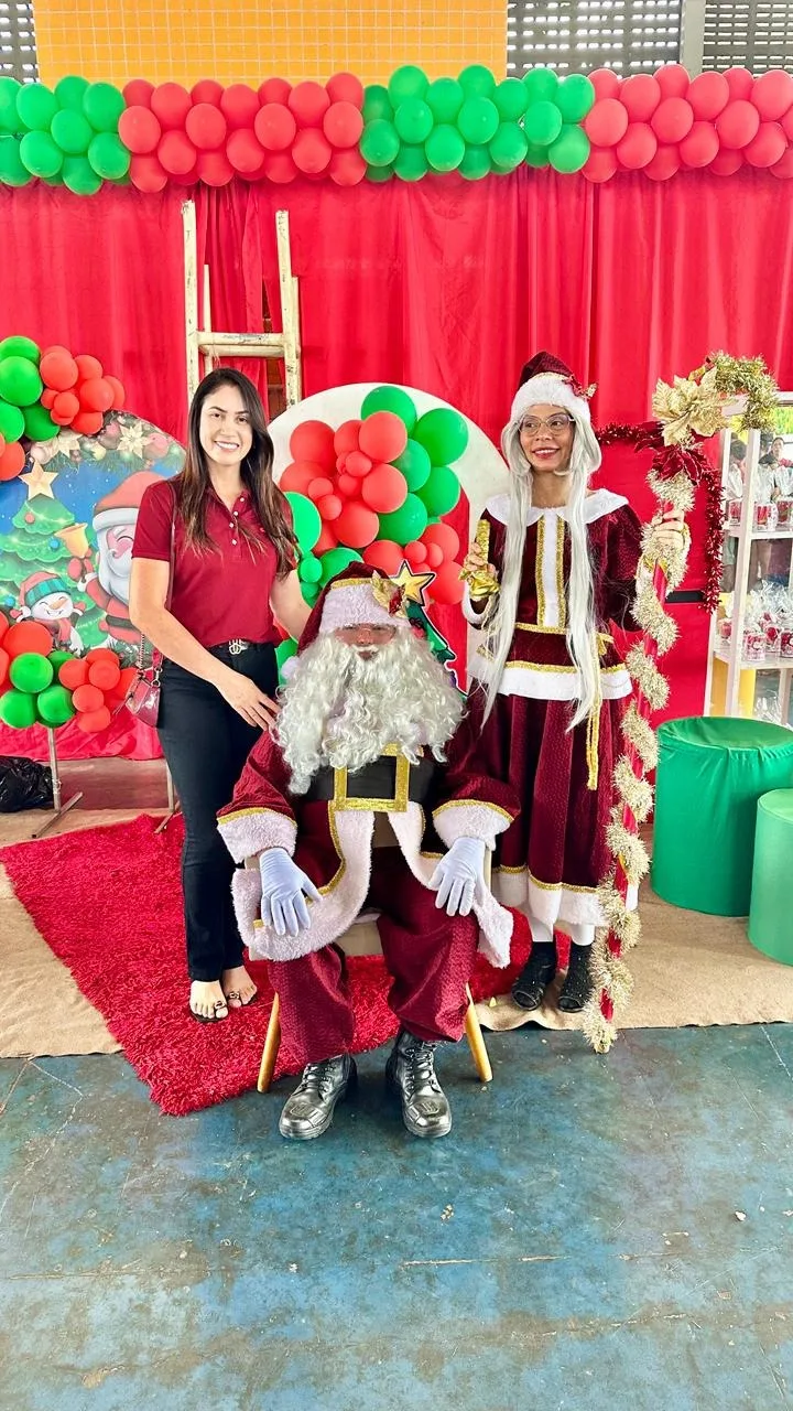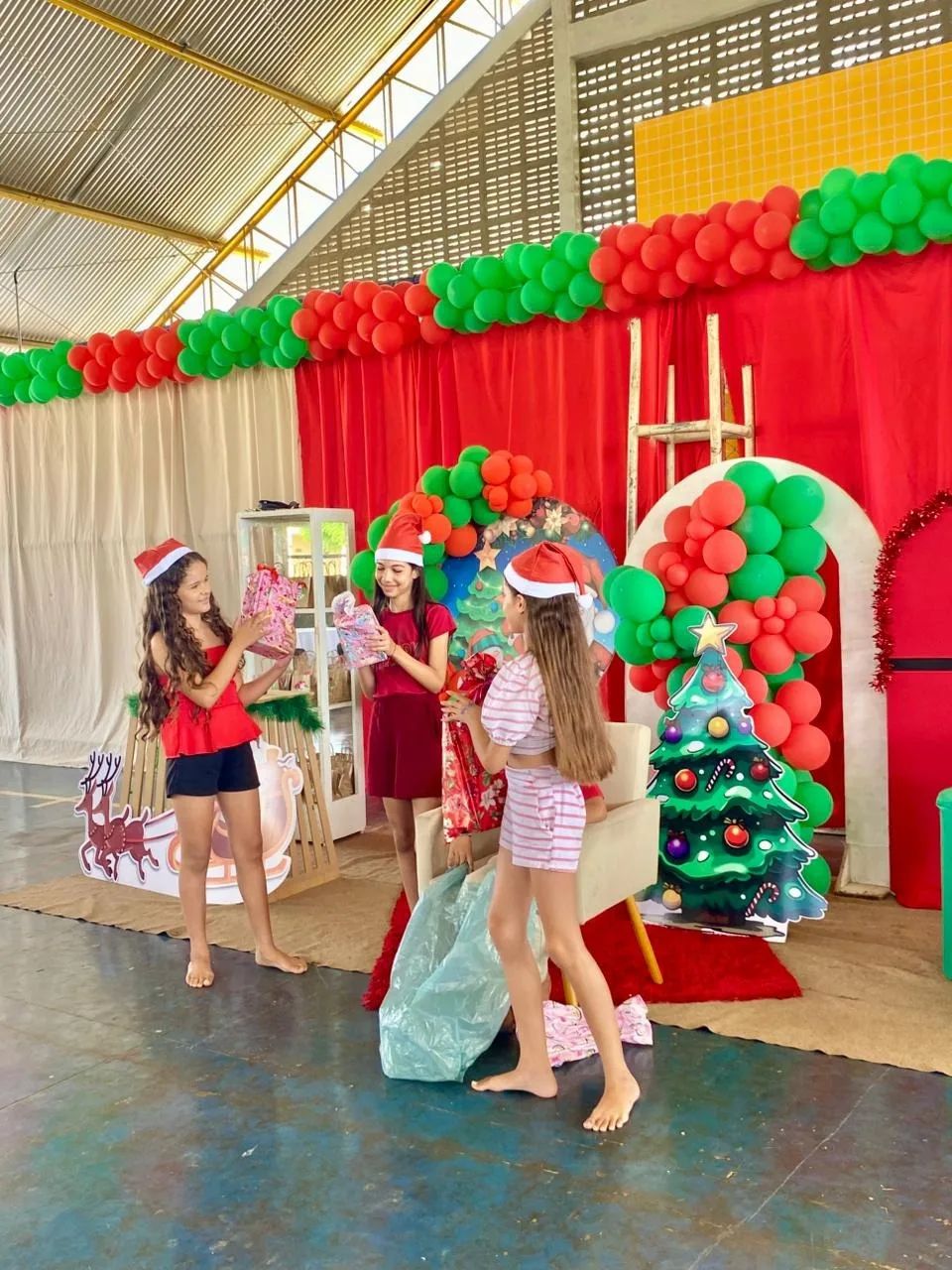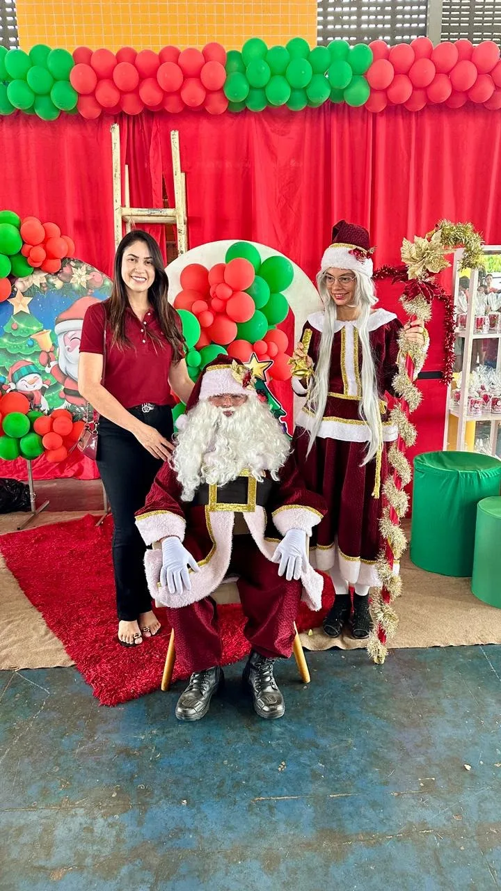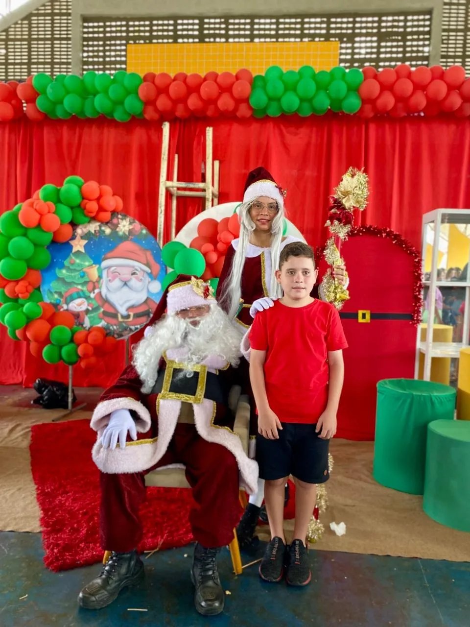 Entre as principais atrações estiveram os palhaços dos “Mímicos da Alegria”, que arrancaram risadas e aplausos do público, além da participação especial do Papai Noel e da Mamãe Noel, responsáveis por momentos de grande emoção com a entrega de presentes e lembrancinhas, tornando o Natal ainda mais mágico para as crianças.