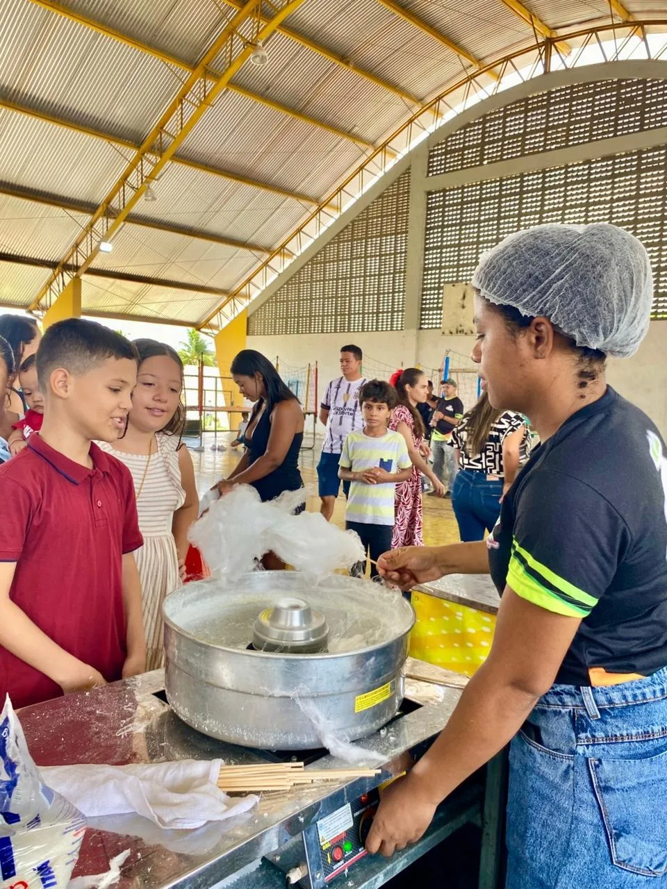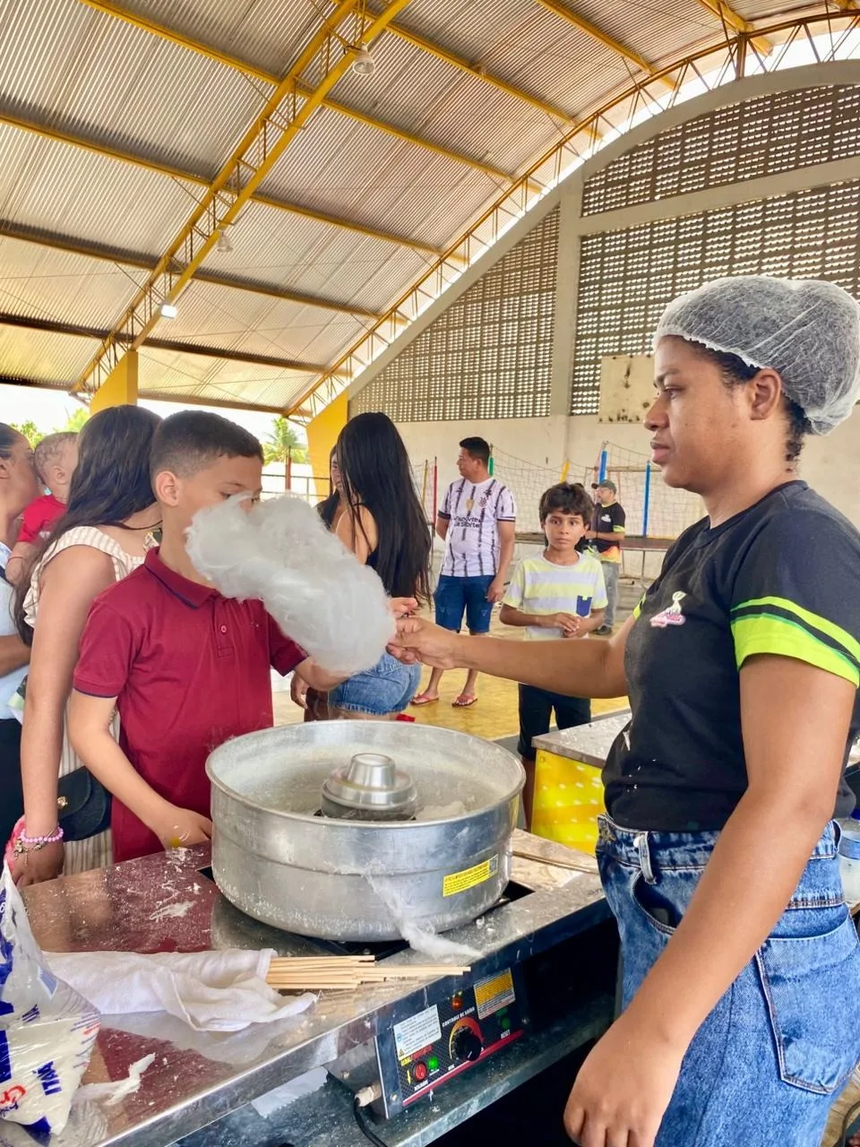 As crianças puderam aproveitar uma programação diversificada, com muita música, brincadeiras, pula-pula, picolés, lanches, algodão-doce e outras comidas.
