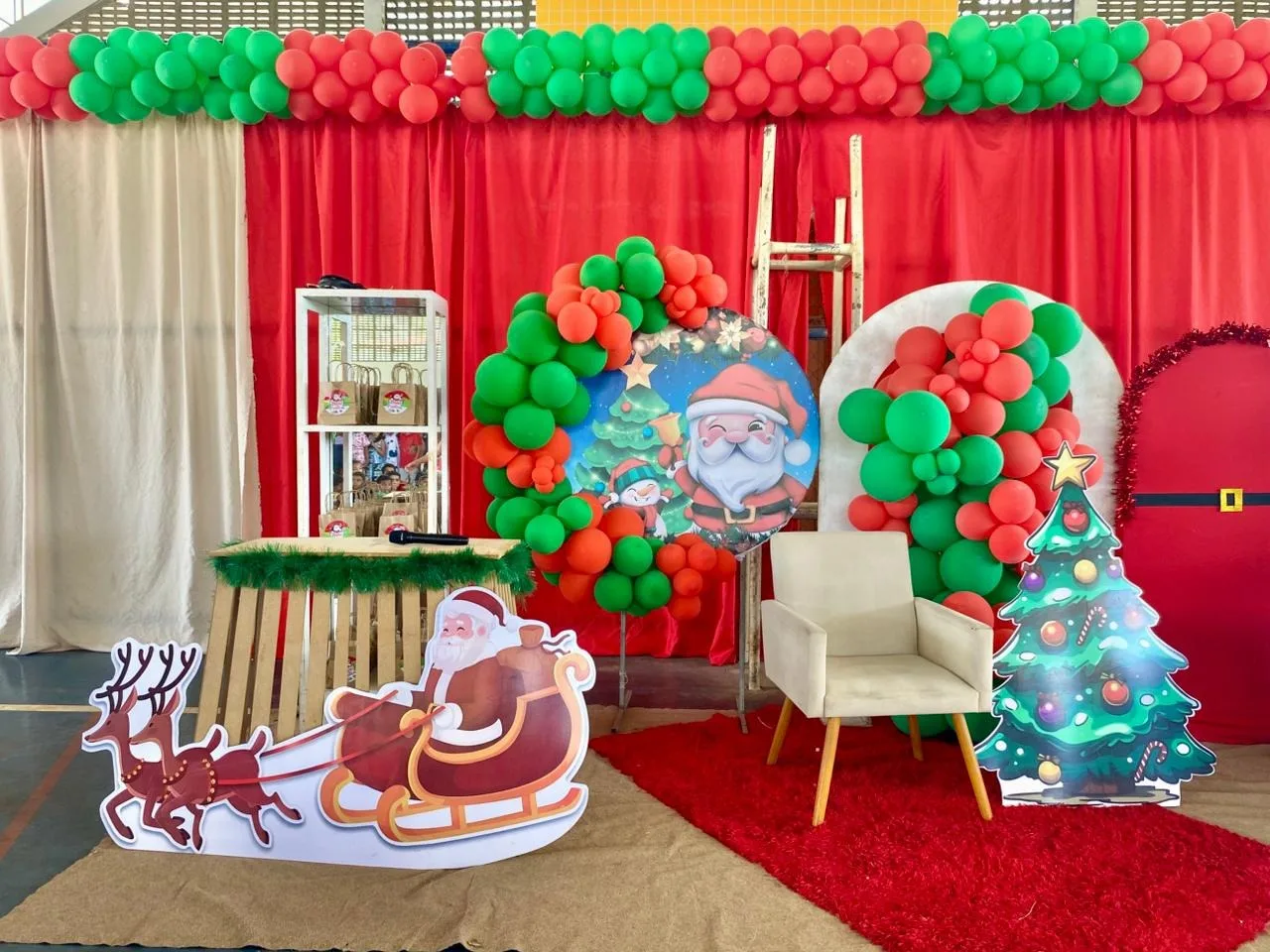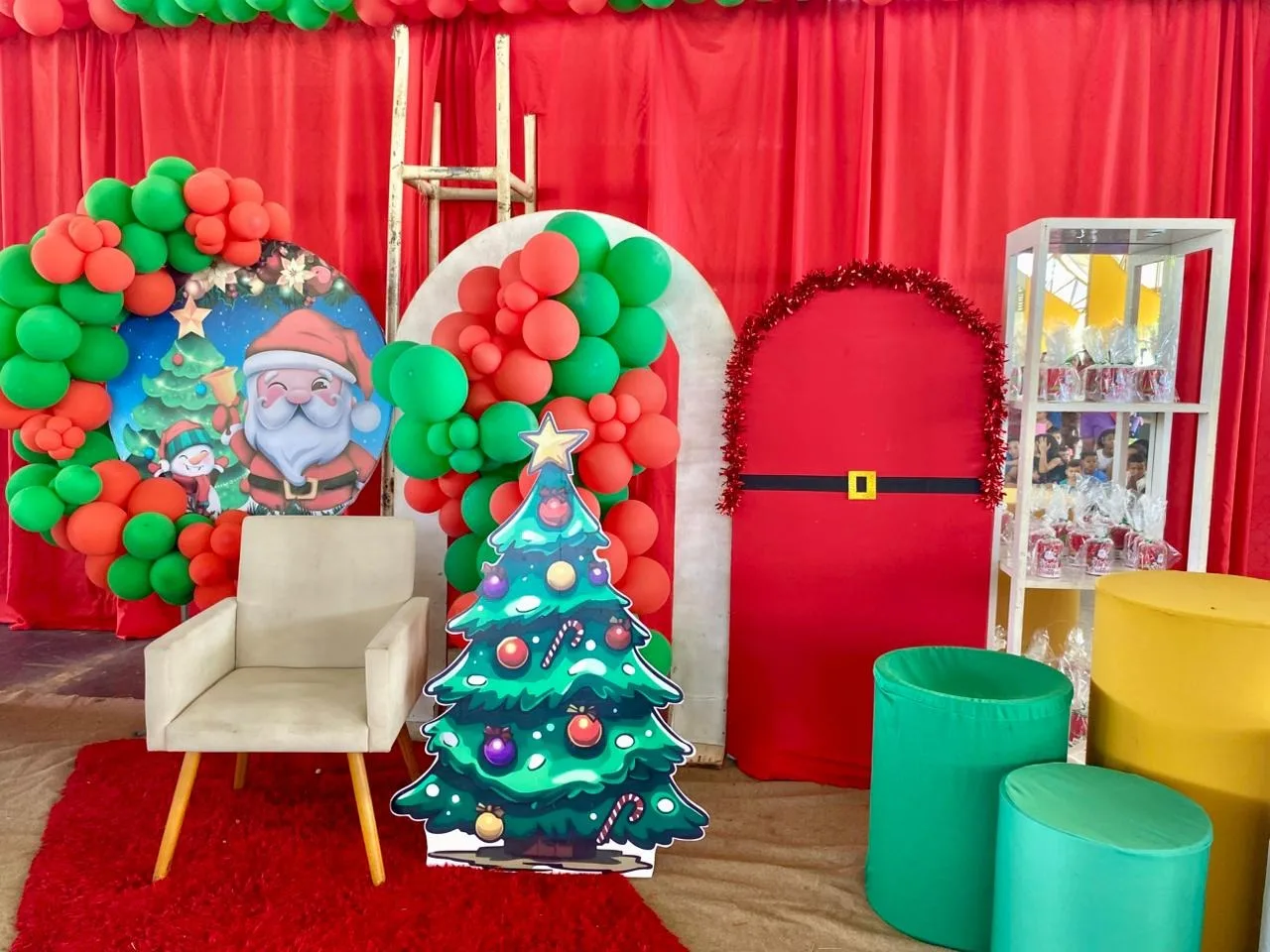 O espaço foi preparado para receber o público infantil, transformando-se em um ambiente lúdico e acolhedor, repleto de cores, músicas natalinas e personagens que encantaram as crianças.